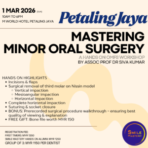 We’ll give you the perfect platform to learn, make mistakes and ask the questions that bother you most about Minor Oral Surgery in our upcoming hands on workshop happening in Johor Bahru, Johor.