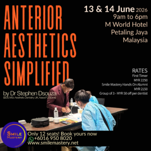 To enjoy the special group rate discount of MYR 1150 per dentist for a group of three, please send us a WhatsApp.